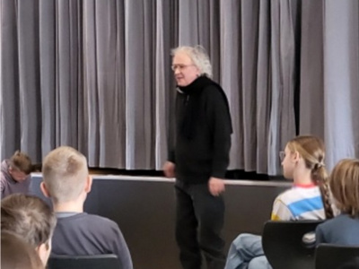 Am 01.12.2025 erzählte uns der Märchenerzähler Herr Vogelwaid einige Märchen. Dafür trafen sich in der Campus-Mensa alle fünften Klassen in der dritten und vierten Stunde. Auch Herr Strohbach hörte sich ein paar Märchen an. Herr Vogelwaid erzählte uns Märchen aus Belgien, Norwegen und ein schwäbisches. Wir mussten bei „Der halbe Hahn“, „Aschenbrödel“ und „Der hässliche Hund“ nicht nur aufmerksam zuhören, sondern auch mitarbeiten. So sollte z. B. eine Schülerin während eines Märchens vorne mit Pantomimen etwas für die anderen Kinder vormachen.